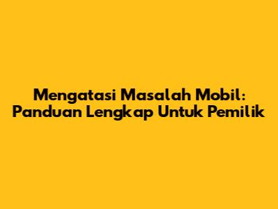 Mengatasi Masalah Mobil: Panduan Lengkap Untuk Pemilik