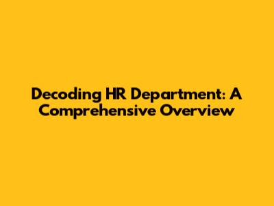 Decoding HR Department: A Comprehensive Overview