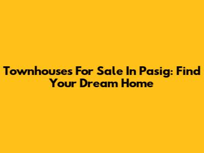 Townhouses For Sale In Pasig: Find Your Dream Home