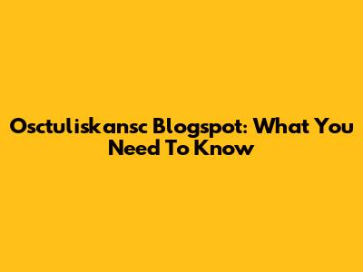 Osctuliskansc Blogspot: What You Need To Know