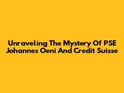 Unraveling The Mystery Of PSE Johannes Oeni And Credit Suisse