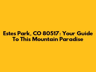 Estes Park, CO 80517: Your Guide To This Mountain Paradise