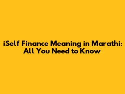 ISelf Finance Meaning In Marathi: All You Need To Know