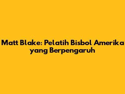 Matt Blake: Pelatih Bisbol Amerika Yang Berpengaruh