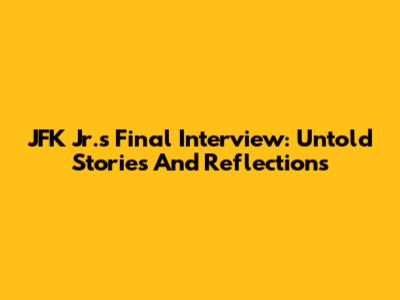 JFK Jr.'s Final Interview: Untold Stories And Reflections
