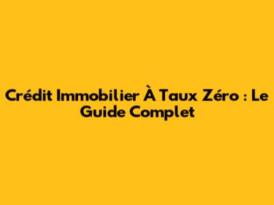 Crédit Immobilier À Taux Zéro : Le Guide Complet