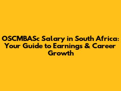 OSCMBASc Salary In South Africa: Your Guide To Earnings & Career Growth