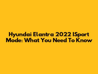 Hyundai Elantra 2022 ISport Mode: What You Need To Know