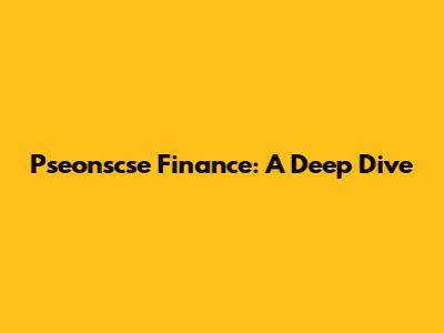 Hey guys! Today, we're going to dive deep into the world of pseonscse finance. If you're scratching your head wondering what that even means, don't worry, you're in the right place. We're going to break down this seemingly complex topic into bite-sized pieces, making it super understandable for everyone. Whether you're a seasoned finance pro or just starting out, there's something here for you. We'll explore the core concepts, its significance, and how it impacts the broader financial landscape. Get ready to get your financial game on point!