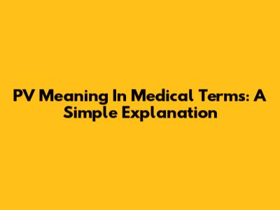PV Meaning In Medical Terms: A Simple Explanation
