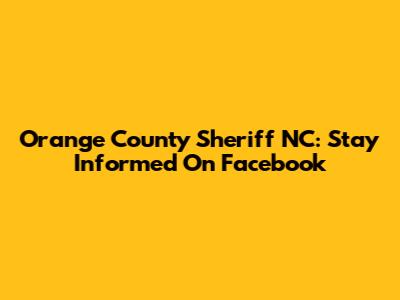 Orange County Sheriff NC: Stay Informed On Facebook