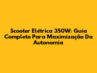 Scooter Elétrica 350W: Guia Completo Para Maximização Da Autonomia